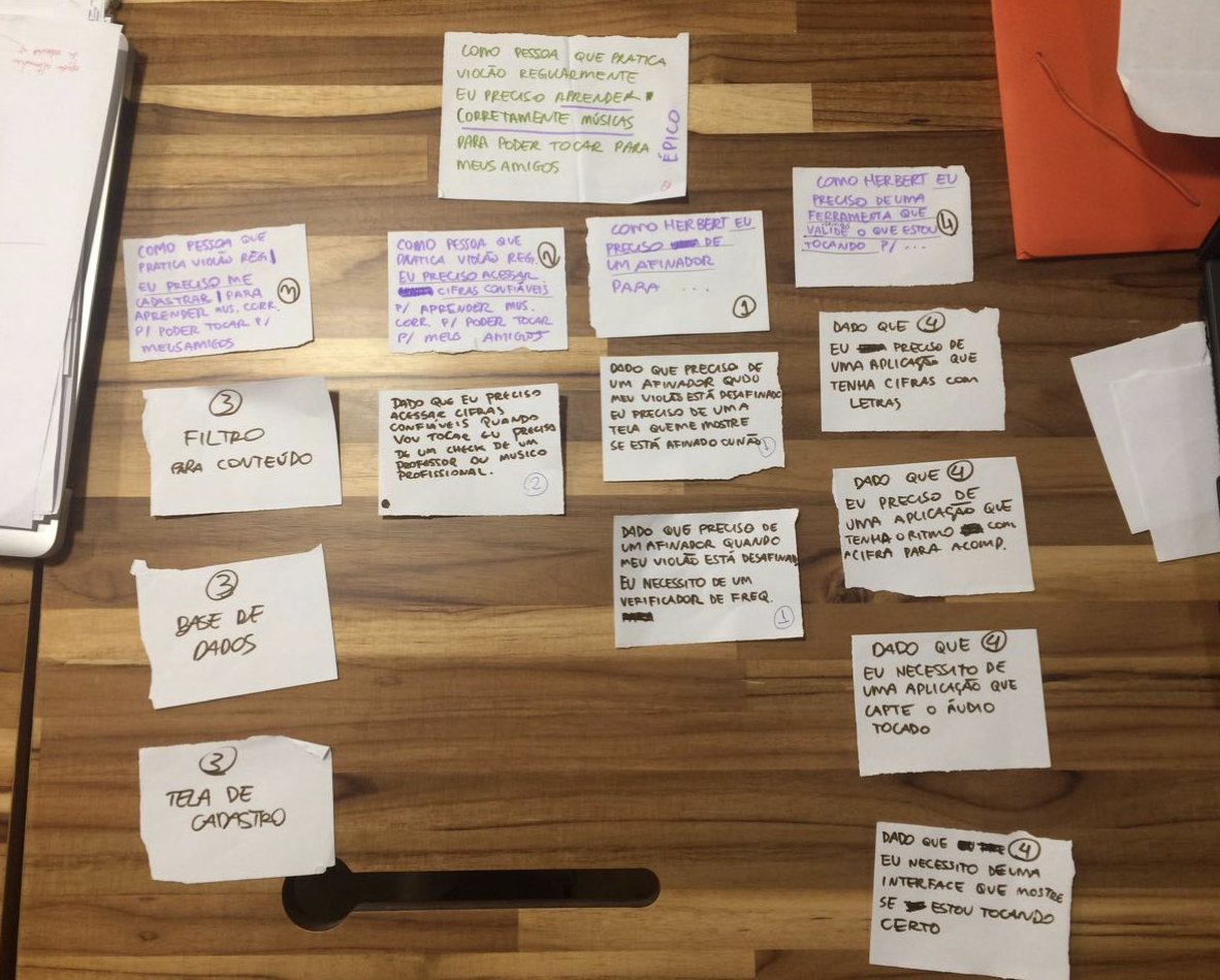 With the proto-persona defined, we described the internal and external actions, expectations and feelings of the user in order to map out his journey on learning how to play a new song. This process helped us to decide how